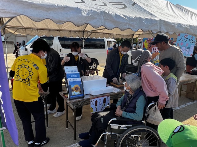 介護老人保健施設サンライフ倉敷も昨年に続き出店させていただき、毎年恒例の「チョコバナナ」に加えて、「ジュース」の販売と施設のPRをさせていただきました。