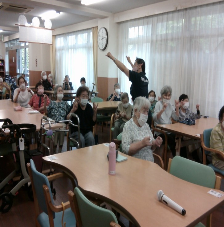 音楽健康指導士の出張レクリエーションでは、コンテンツを最大限に活用して懐かしの歌謡曲や脳トレーニングを織り交ぜ、一体感につつまれた時間をお過ごしいただけます。