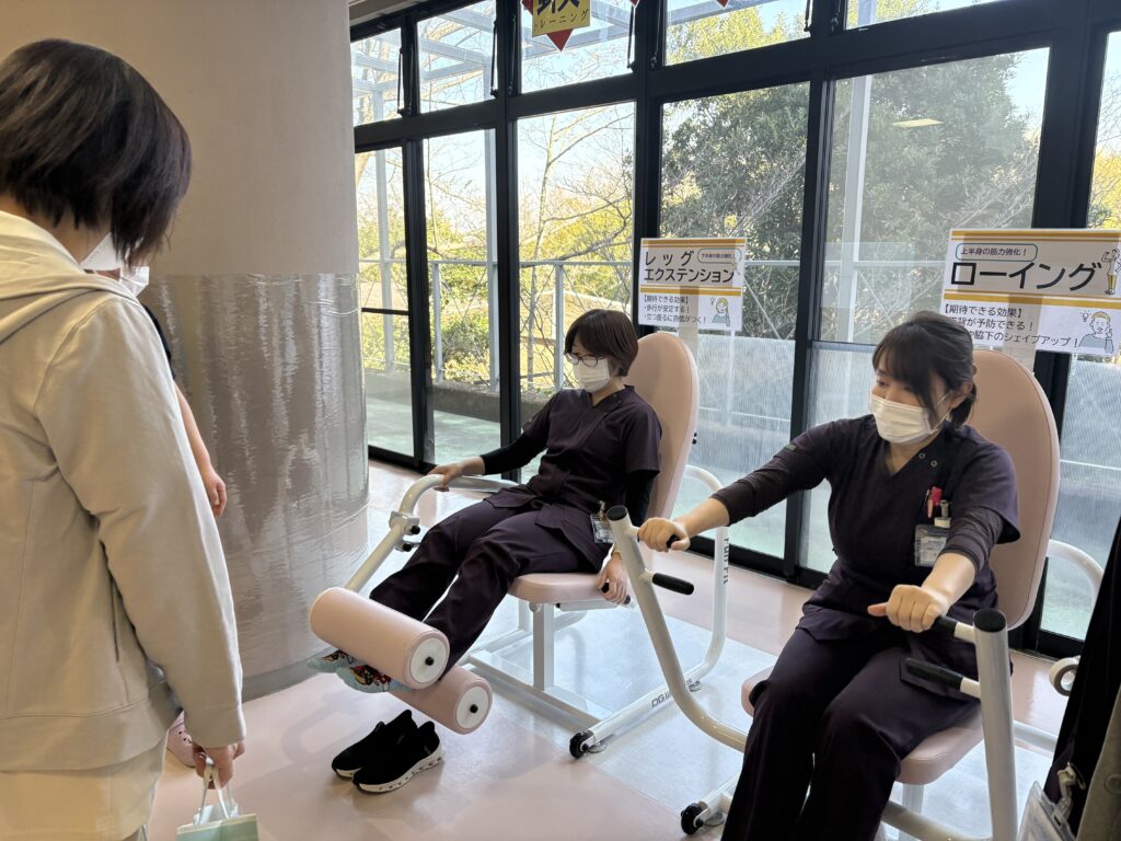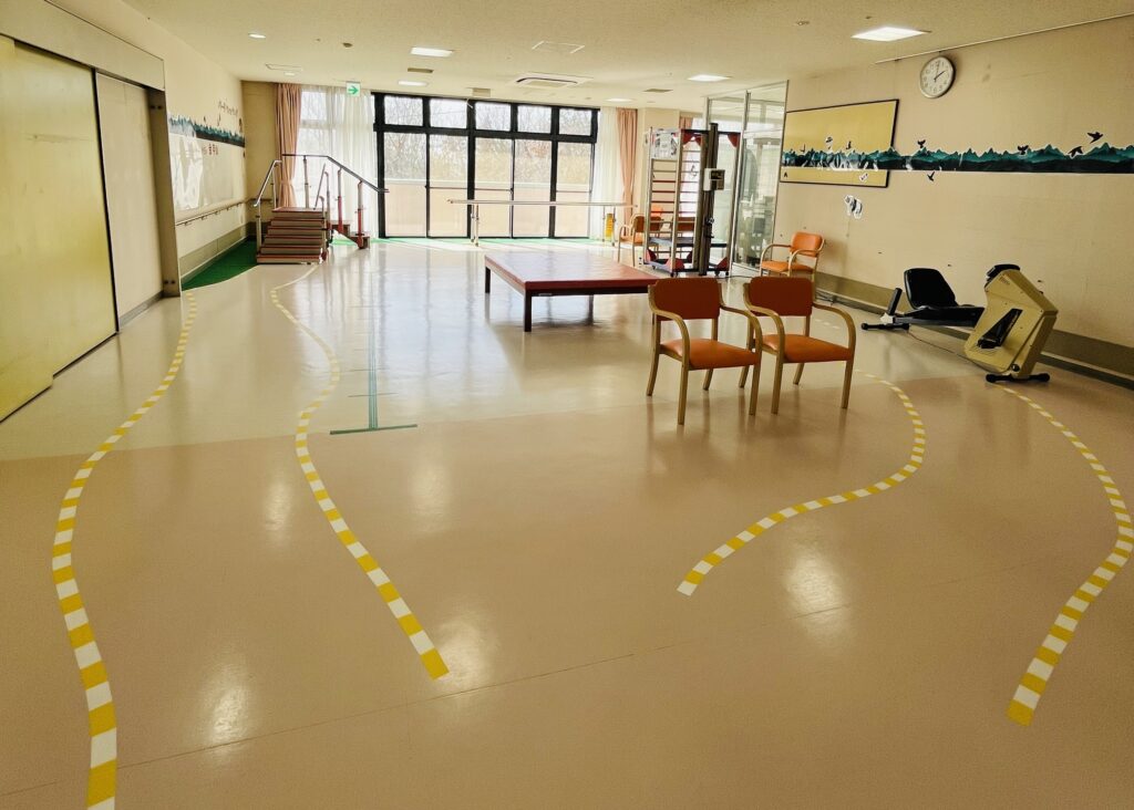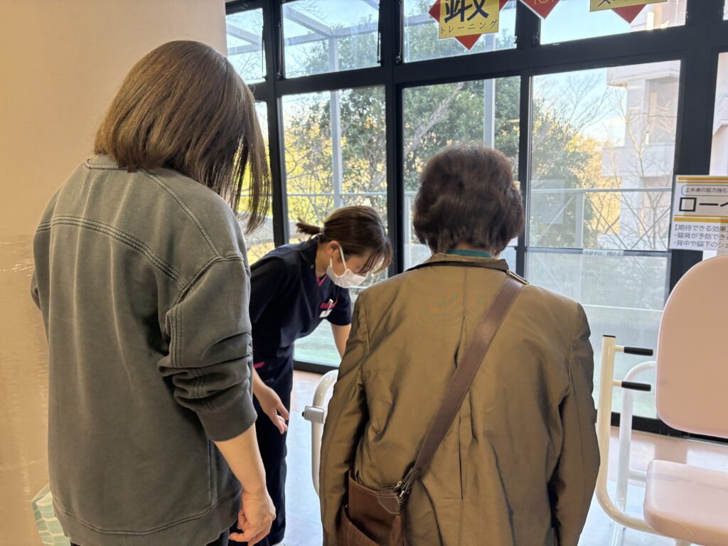 施設の様子や、サービス内容を見ていただきながらご紹介しました。個別対応の柔軟さに喜んでいただき、サーキットコースは広々と開放感のある室内歩行訓練スペースとしてご好評でした。