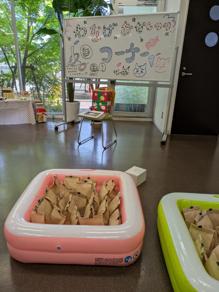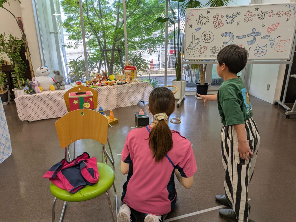 こども縁日コーナーでは、「わなげ」や「おかしつり」を用意し、子どもたちは楽しそうに挑戦しながら、元気いっぱいの笑顔を見せてくれました。
