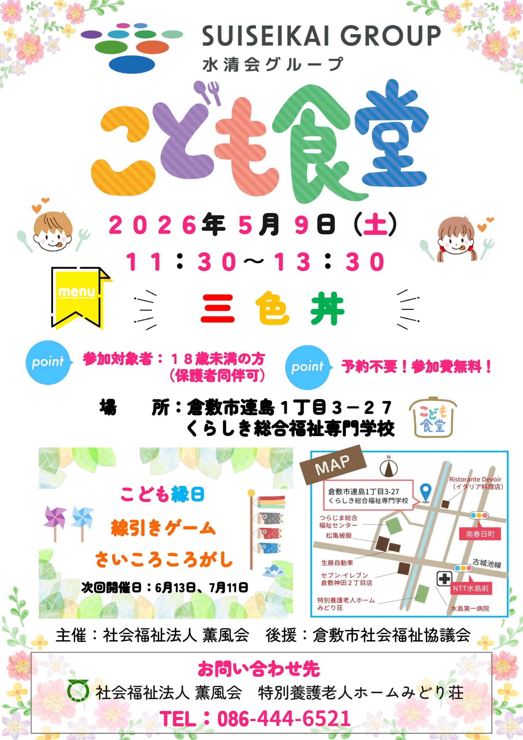 社会福祉法人薫風会は、令和8年5月9日(土)に、以下のとおり「第12回こども食堂」を開催いたします。