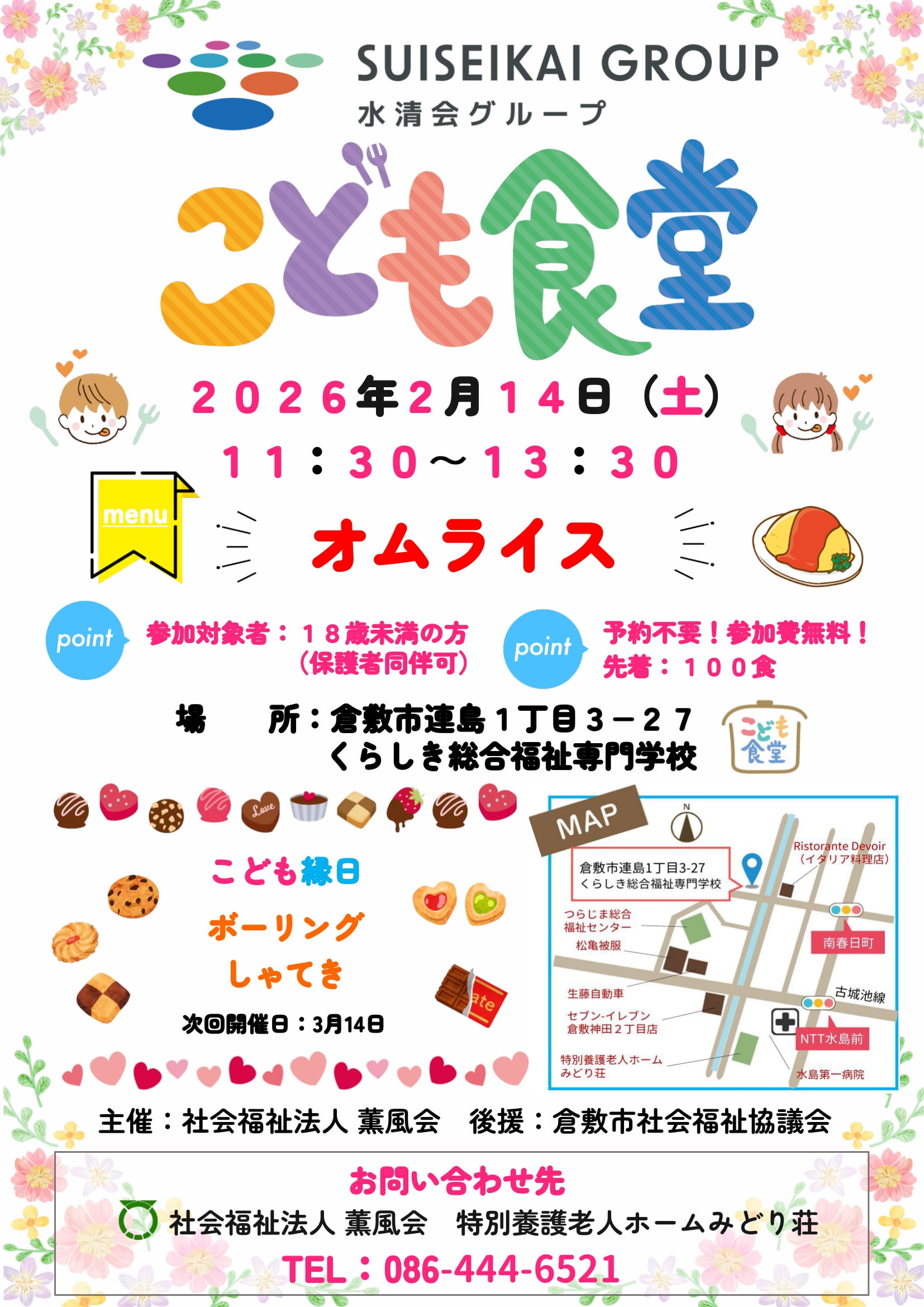 社会福祉法人薫風会は、令和8年2月14日(土)に、以下のとおり「第9回こども食堂」を開催いたします。