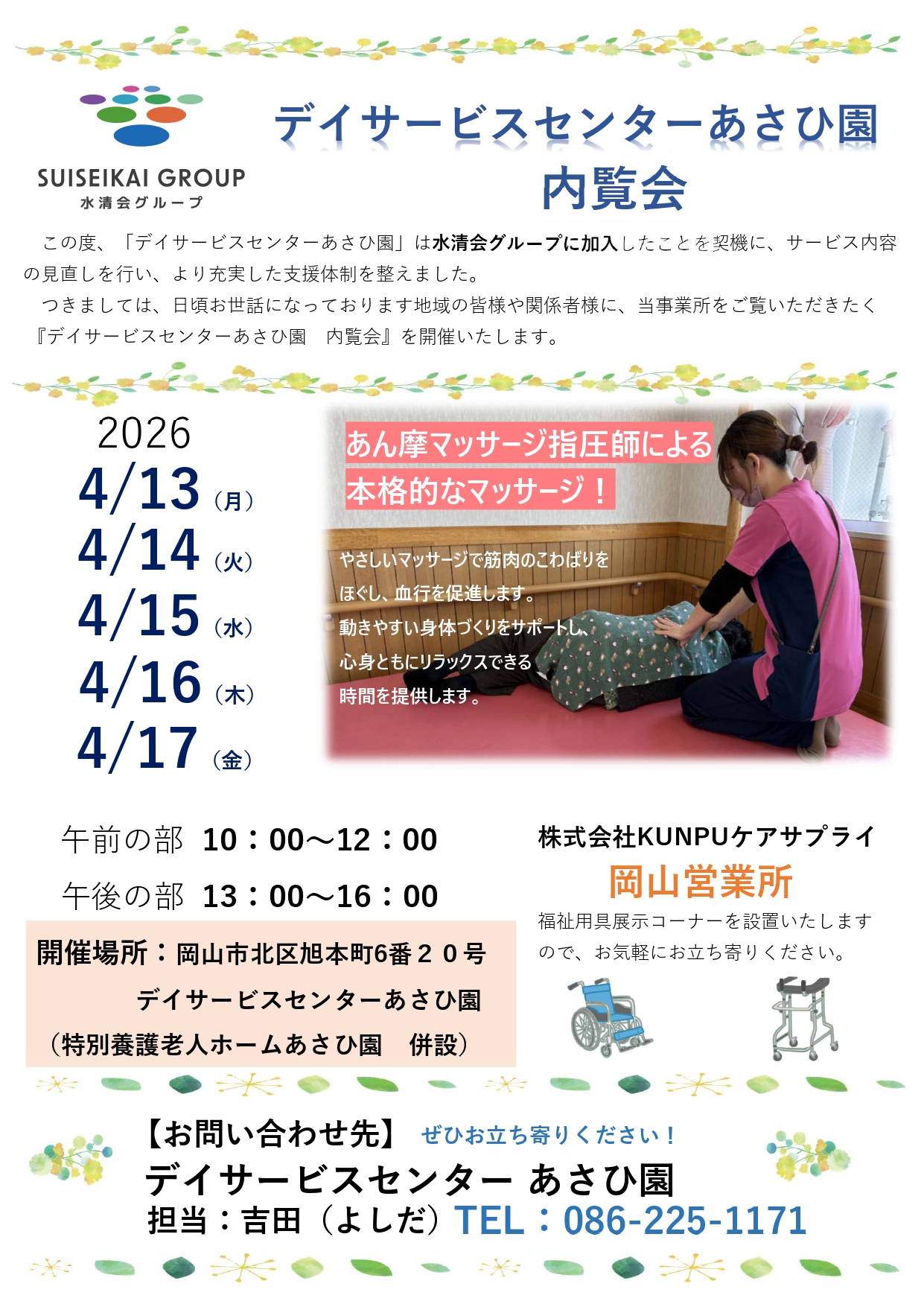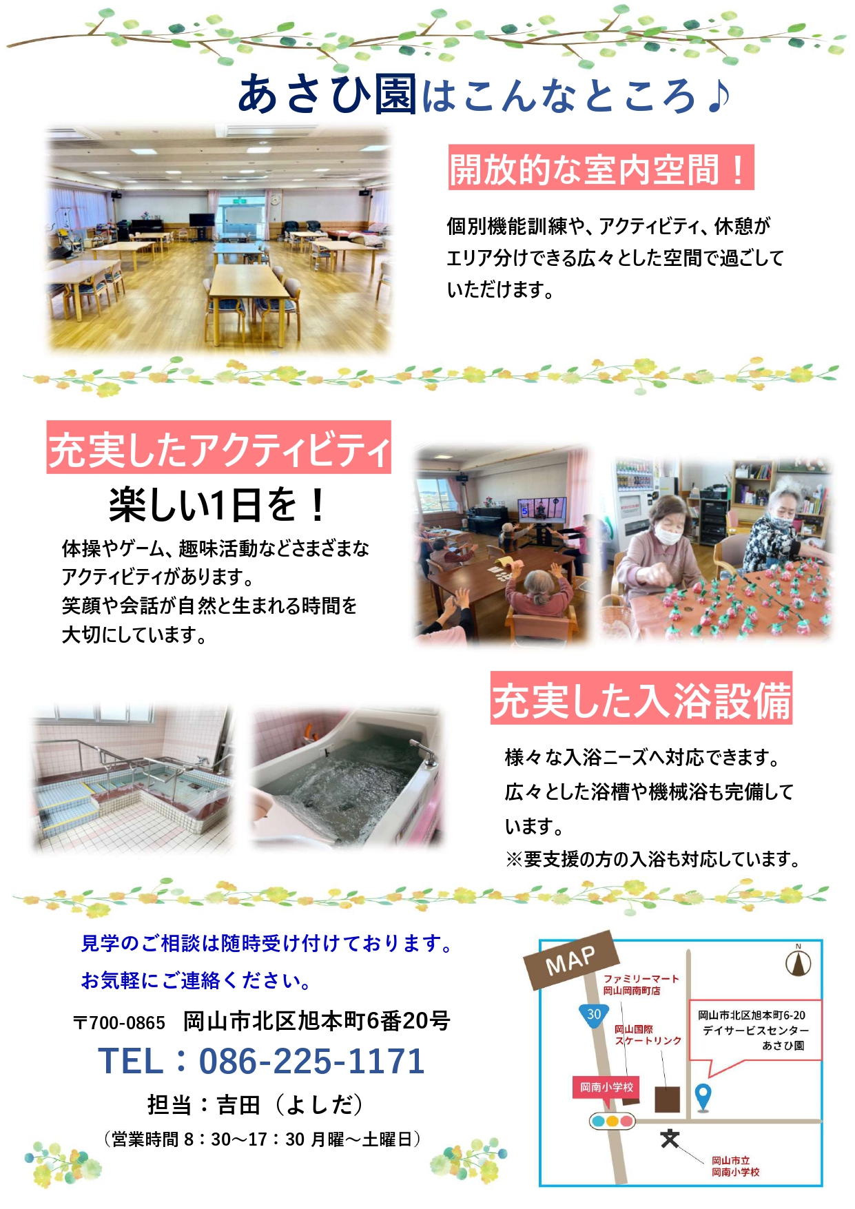 生まれ変わったデイサービスセンターあさひ園をこの機会に実際に見て・感じてください。